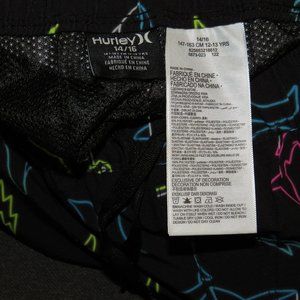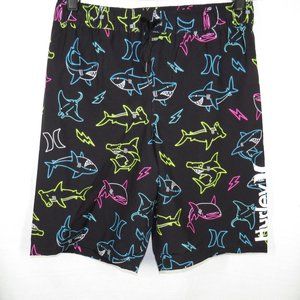 Hurley Black Multi Shark Print Swim Trunks, NEW, Size 14-16, 27"-36" Waist