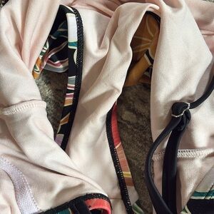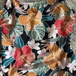 Hurley Black and tropical floral One Piece Swimsuit - open back - medium