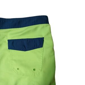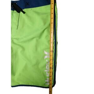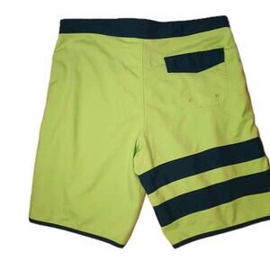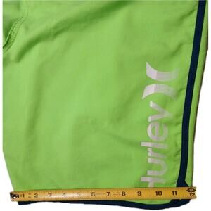 The Hurley Block Party Swim Boardshorts in men's size 36 are stylish and vibrant tropical trunks perfect for beach days or pool parties. These bright green board shorts feature a striped pattern, making them a fun and eye-catching addition to your swimwear collection.