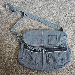 Hurley Blue Heathered Gray Crossbody Foldable Tote Bag With Zippers & Buttons