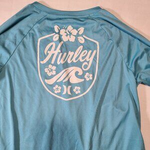 Hurley Blue Long Sleeve Rash Guard Size 10/12 UPF 50+ Swim Sun Protection Tee
