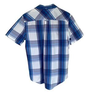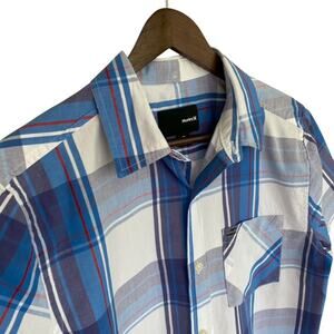 This Hurley button-up shirt features a classic blue and white plaid pattern. Perfect for a casual day out or a laid-back weekend. The shirt is in great condition and has been well-cared for.