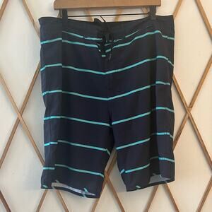Hurley board shorts. Navy with aqua stripes. Size 34