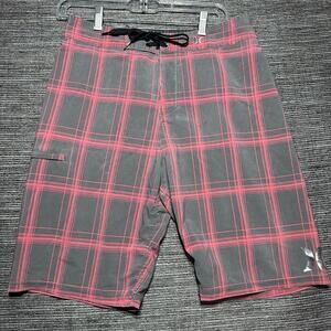 Hurley Board Shorts Men's Size 32 Gray Plaid Phantom Stretch