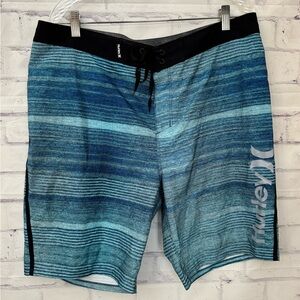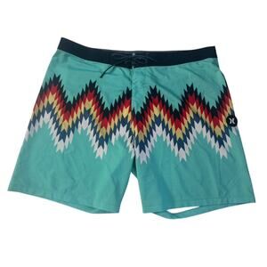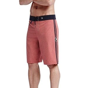Hurley Board Shorts Red Blue Print Zip Pocket 36 Waist