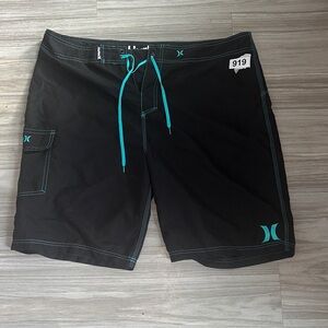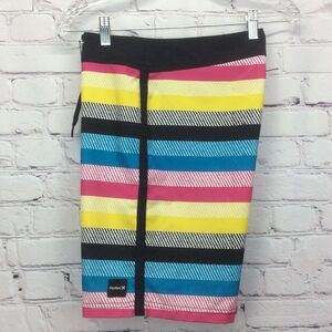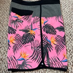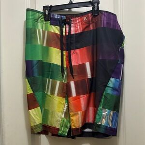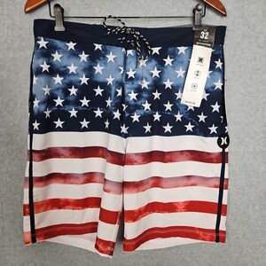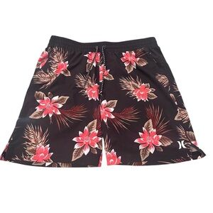 Hurley Board Shorts Red Blue Print Zip Pocket