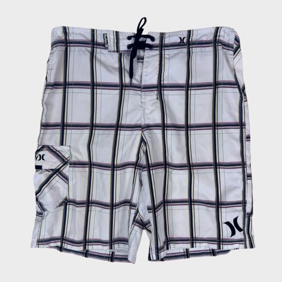 Hurley Board Shorts White Black Check Windowpane Size 34