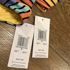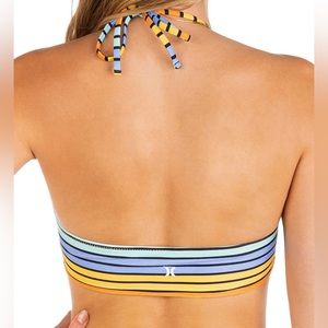Hurley Bombay Stripe Tie Front Halter top moderate hipster bottom bikini set.