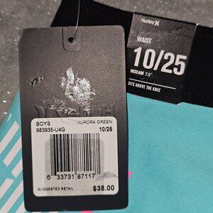 Hurley Boys 10/25 Aurora Green Boardshorts With Pocket & Drawstring Closure