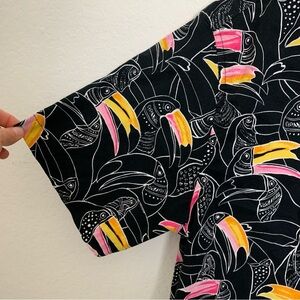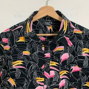 Hurley Button Up Shirt Bird Toucan Print Shirt Sleeve Mens L Colorful Collared