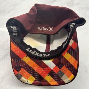 Hurley By Yupoong Flexfit Embossed Logo Fitted Six Panel Hat Cap Maroon S-M