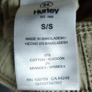 Hurley Cargo Pants Mens Small Beige Jogger Drawstring Elastic Waist Pockets Casual