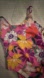 Vibrant floral one-piece swimsuit with pink, orange, and yellow flowers. Perfect for a stylish beach day.