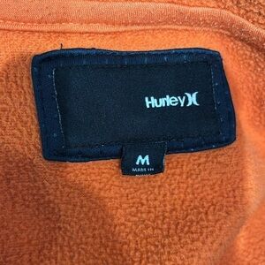 Dark blue jacket with a bright orange Hurley logo. Casual and trendy design.