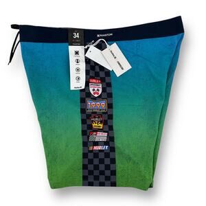 Hurley Eco Phantom NASCAR Racetrack Boardshorts Swim Trunks Sz 34 18" Outseam