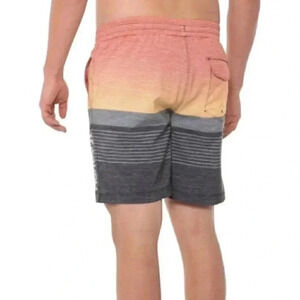 Hit the waves and hang ten wearing these Young Mens Hurley epic ombre volley swim trunks. The trunks feature a drawstring elastic waist, side pockets, a back pocket, an ombre striped print, and a logo script.