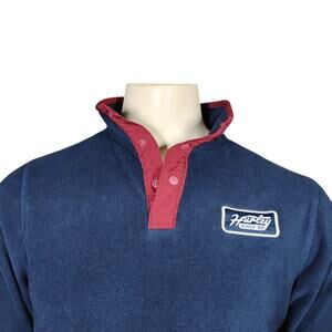 Hurley Fleece Pullover Sweatshirt Size Small Blue and Red Henley Snap Button Up