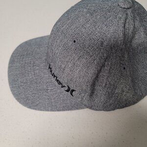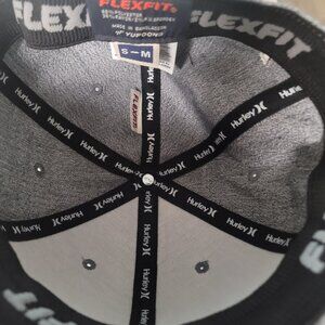 Hurley Flexfit Hat Gray Black Script Logo Pre-Owned Excellent Size Small/Medium