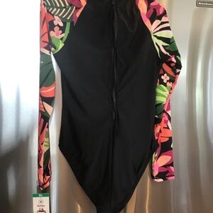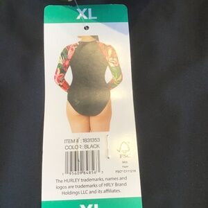 Hurley Floral Long Sleeve One Piece Rash Guard Swimsuit XLBlack UPF 50+ NWT