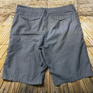 Hurley Mens 36 X 12 Gray Flat Front Casual Shorts in used condition. There is a small stain on the front and the button needs to be re-seen. See pictures. No other stains, tears or rips.