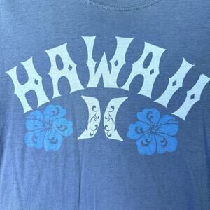 Hurley Hawaii Hibiscus Tropical Flower Graphic Blue T-Shirt Juniors's Size L. Round neckline, short sleeve t-shirt. Lightweight, soft strety knit jersey fabic.
