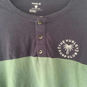 Hurley Henley T Shirt Mens Large Blue Long Sleeve Surf Club Embroidery