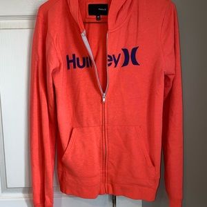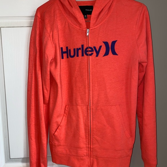 Hurley Jacket Hoodie Great for year around and Great for the Cool evenings walk along the a beach!! The size is M and has zipper and hood… Great Used condition