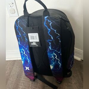 This listing is for a NWT's Hurley Lightning Graphic Backpack. Get ready for school in style with this Hurley graphic backpack. The backpack has a small compartment for valuables and a laptop compartment that fits devices up to 12 inches.