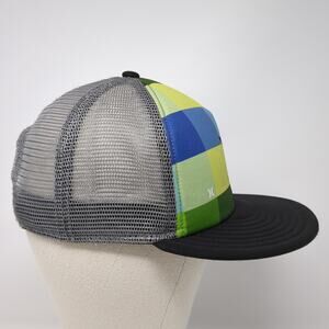 Hurley Logo Snapback Mesh Back Trucker Hat Multi One Size Colorblock