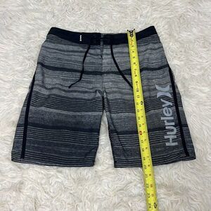 Hurley Men's 29 Grey & Black Striped Phantom Swim Trunks Board Shorts