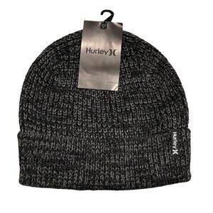 Hurley Men's Black/Grey Cuffed Beanie - Loose Knit Winter Hat One Size