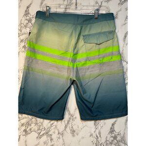 Hurley Men's Board Shorts Green & Blue Striped Swim Trunks Size 31