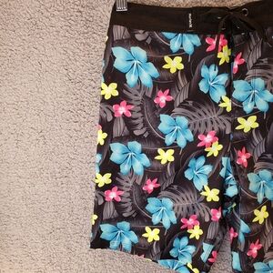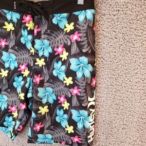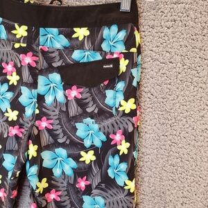 Hurley Mens Board Swim Skater summer Trunks Black Hawaiian Flowers Sz 14/27