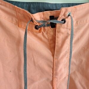 Coral orange swim shorts with back pocket and tie waist. Fit like large.