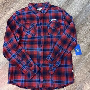 Hurley Men's Flannel Plaid Button-Down Shirt (SUNDRIED TOMATO) Size Small
