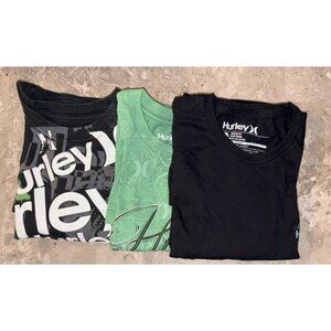 This bundle offers three premium Hurley graphic t-shirts in size large. Crafted from a soft cotton and polyester blend, these tees ensure comfort and durability. Featuring stylish designs suitable for casual wear, they are made with high-quality materials designed in Costa Mesa, CA, and manufactured in Mexico.