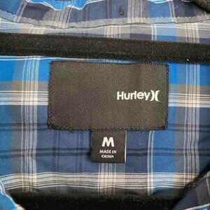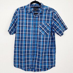 Hurley Mens Medium Blue Gray Plaid Button Down Short Sleeve Shirt