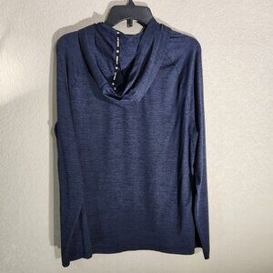 This lightweight navy hoodie is designed for casual and active settings. The breathable material ensures comfort and ease of movement throughout the day. Athletic Performance style hoodie.