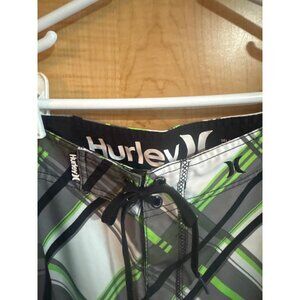 These Hurley swim trunks feature a stylish plaid design in green and gray tones. Designed for comfort and functionality, they include a secure drawstring closure and a practical side pocket. Ideal for water activities, these trunks combine style and practicality for discerning individuals.