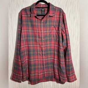 Hurley Men's Red and Green Plaid Button Down Shirt