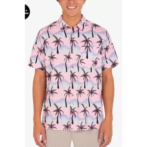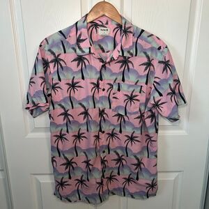 Hurley Men's Rincon Print Short Sleeve Button-Up Shirt Large Hawaiian Tropical