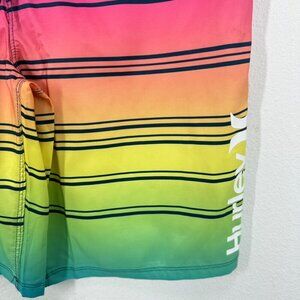 Hurley Men's Size 29 NWT Vibrant Neon Rainbow Ombre Tie Waist Board Shorts Beach