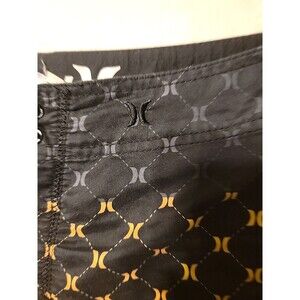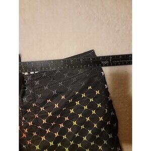 The Hurley Men's Size 32 Black Pink Blue Orange Logo Boardshorts are a colorful and stylish swimwear option for men who enjoy surfing. Made from 100% polyester, these board shorts feature a geometric pattern with the brand's logo in various colors. The regular fit and swim bottom style make them comfortable for water activities while adding a touch of personality to your beach look.
