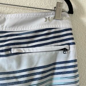 Hurley Men’s Swim Board Swim Trunks 34 Blue White Vacation Beach Pool Surf in great condition/ waist tied/ single back zip pocket / No size tag- Please see all measurements- Final Sale