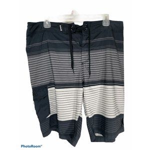 Hurley Men's Swim Trunks Shorts Striped Gray White Black Size 36