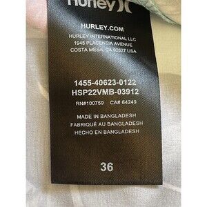 These fun tropical boardshorts by Hurley features four way stretch woven fabric, 20 inch outseam, 9.5 inch inseam, waistband with drawcord closure, all over print and contrast side, back patch pocket with Velcro flap closure, and water repellent. These board shorts sits at the knee and does not have a lining. Size 36. Brand new tag on waistline. Comes from a smoke-free home.