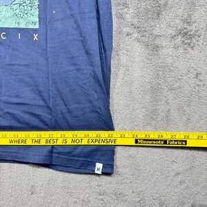 Hurley men’s XL short sleeve graphic tee. Blue cotton fabric with a tropical palm tree and sunset beach scene design. Lightweight and casual, perfect for surf or everyday style.