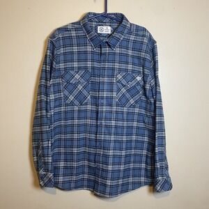 Hurley Men's XL Blue Plaid Flannel Shirt Two Pocket Button Up Heavyweight