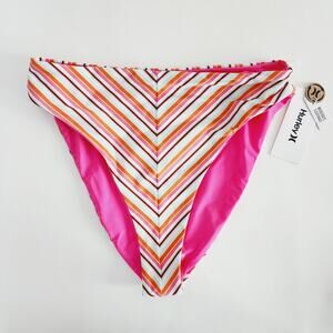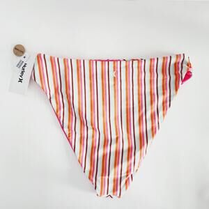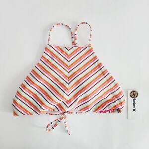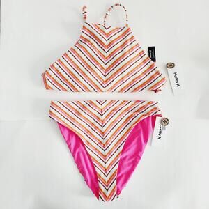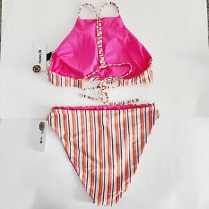 Stylish one piece with vibrant stripes. Features a mix of colors for a bold look. Perfect for beach days.