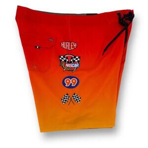 Hurley Nascar Phantom Eco Flames Swim Trunks Boardshorts Sz 36 Checker Flag 18"